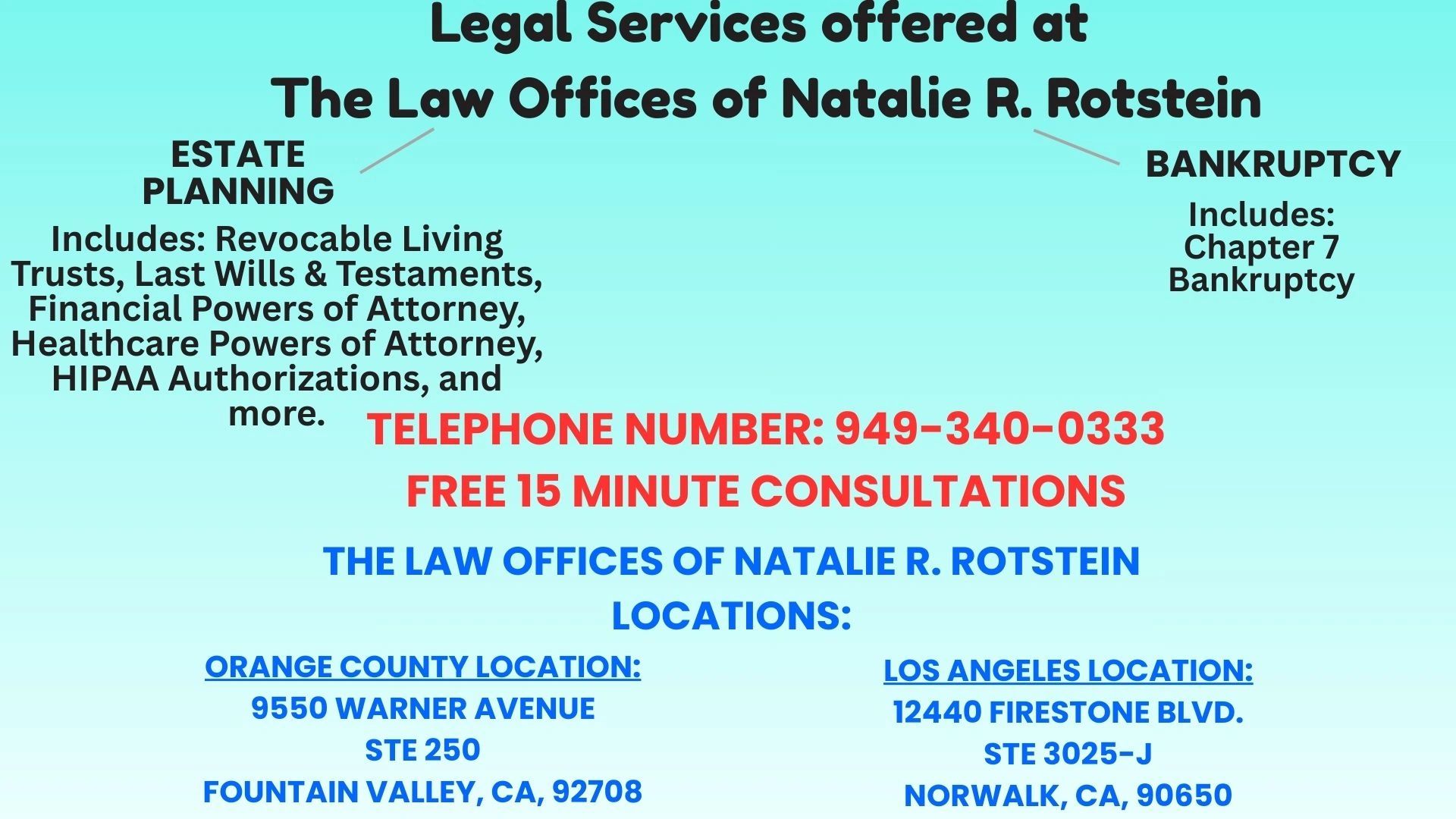 Contact the Law Offices of Natalie R. Rotstein at (949) 340-0333 to schedule a consultation.